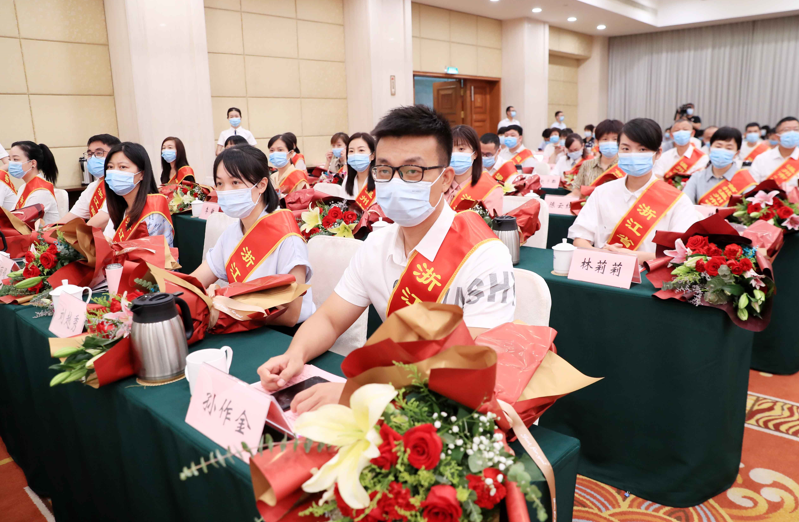 会议首先对我市一批优秀教师和教育工作者进行表彰。聚光灯下,省正高级教师代表、省教坛新秀代表,首批市中小学思政课教师年度人物代表、在温高校优秀教师代表,“瓯越情”优秀教师(校长)代表、市优秀教师、优秀班主任、优秀教育工作者代表分批上台领奖。身前一条条鲜艳的红绶带,是他们守望三尺讲台、无私奉献教育事业的回馈。在这次庆祝教师节大会上,这批身披红绸的优秀教师和教育工作者,牢牢占据着整个会场的“C位”,落座在会场的最前排和中心位置。