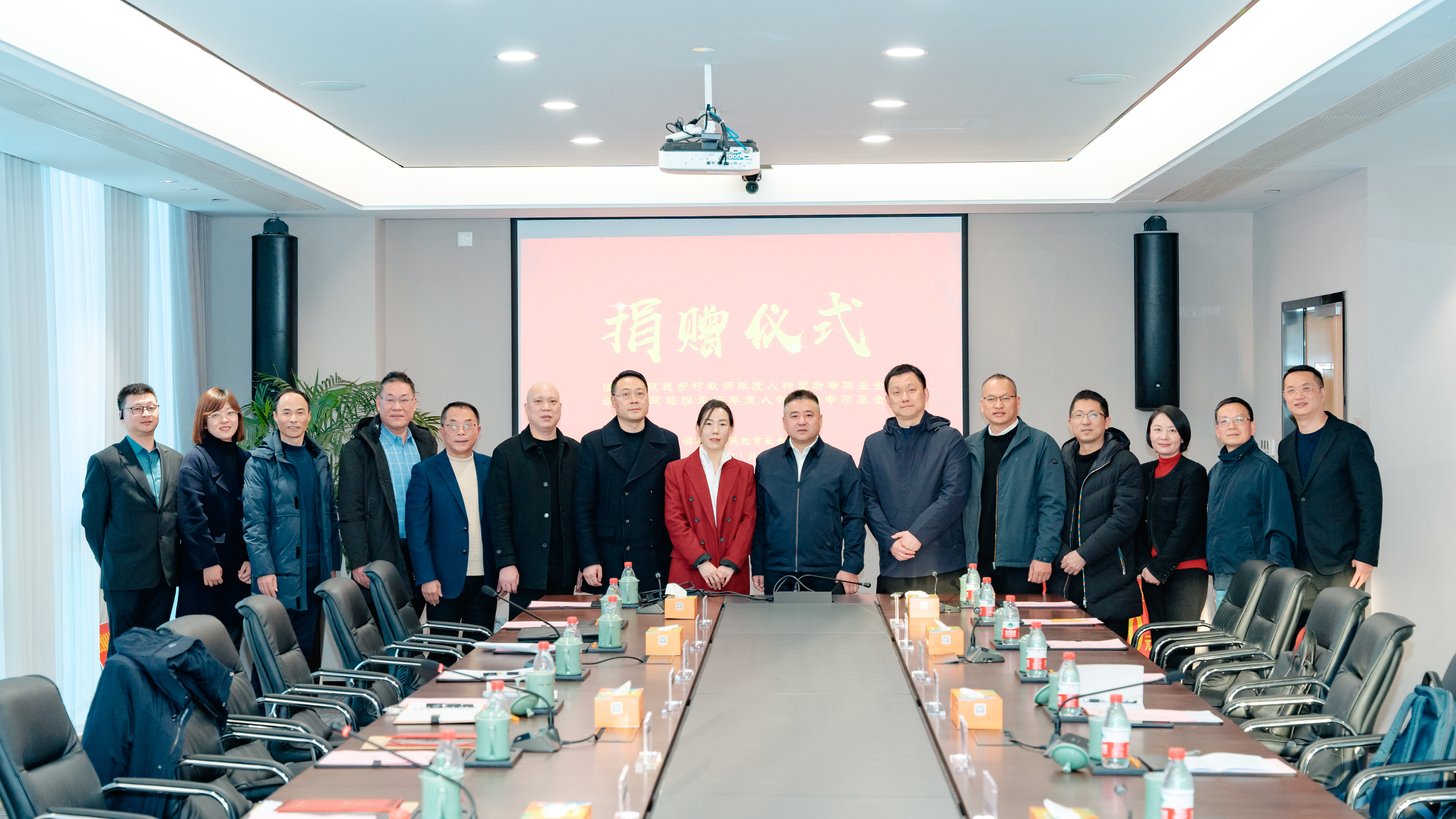 1月31日下午,由温州市人民教育基金会主办的温州市瓯越班主任、乡村教师年度人物奖励专项基金捐赠仪式在温银大厦406会议室顺利举行。富康发展控股有限公司与浙江澳林建设有限公司分别向温州市人民教育基金会捐赠500万元,设立“温州市瓯越班主任年度人物专项基金”和“温州市瓯越乡村教师年度人物奖励专项基金”,用于助力温州中小学班主任和乡村教师成长。温州市委教育工委委员、市教育局党委委员、副局长张维凯,富康发展控股有限公司副总裁柴娟,浙江澳林建设有限公司代表黄东海,市教育局相关处室、市教师教育院、市教育工会、洞头区教育局、市人民教育基金会有关负责同志和新闻媒体人士参加本次会议。