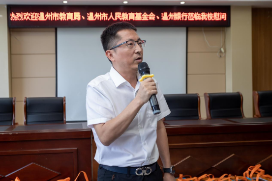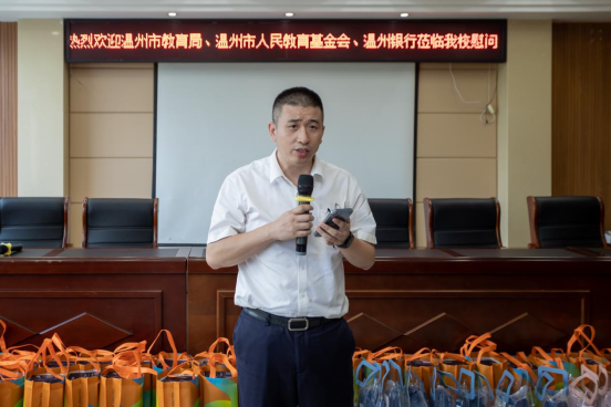 仪式上,徐俊指出,乡村振兴,教育先行。茗岙教育的发展离不开在座老师的无私奉献和坚守。他对中共温州银行党支部支持温州教育、茗岙教育表示感谢,向在场教师致以最崇高的敬意,并祝愿茗岙小学、茗岙教育以及茗岙都能获得更好的发展。