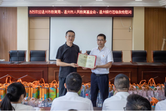 当日,茗岙小学校长潘文文介绍了学校的办学理念、文化特色与现状。通过与在校师生的交流,大家详细调研了学校的师资情况、教师教学所面临的困难。现场,赵坚琳向中共温州银行金融科技部一、二党支部颁发了捐赠荣誉证书。