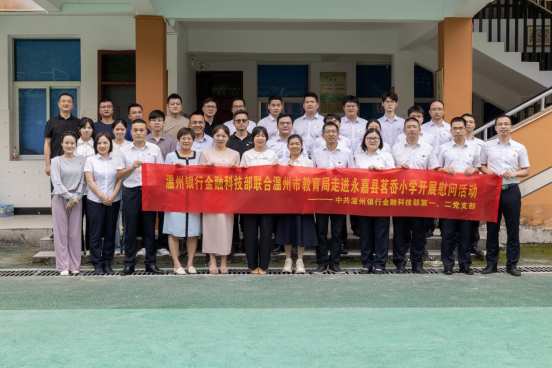 9月12日,温州市教育局机关第二支部、温州市教育工会教育基金会联合支部,联合温州银行金融科技部第一、二党支部走访永嘉县茗岙乡中心小学,开展慰问、捐赠活动。温州市教育工会主席徐俊、温州市人民教育基金会赵坚琳、温州银行党群工作部巡察办副主任王建宁、温州银行金融科技部副总经理张海波,以及各党支部成员出席了本次活动。茗岙小学校长潘文文、茗岙乡党委委员虞志菲,热情接待了来宾并表达衷心感谢。
