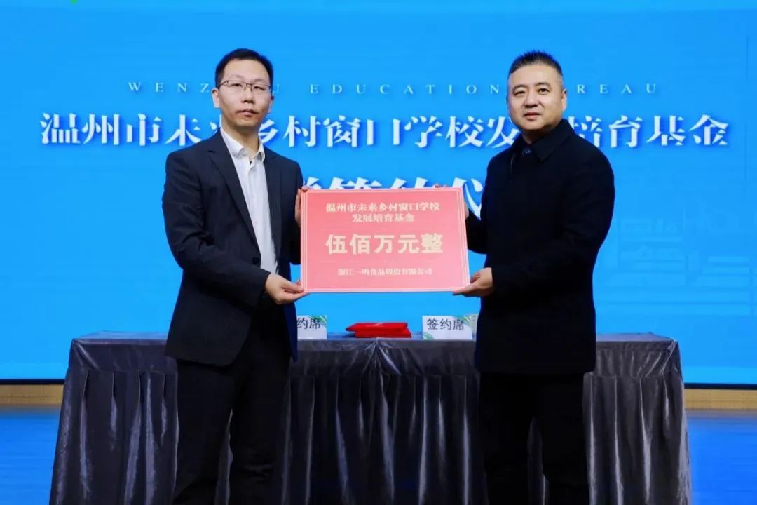 会上,市教育局副局长张维凯出席签约仪式。浙江一鸣食品股份有限公司、苏州市东森果品食杂有限公司分别捐赠500万元设立温州市未来乡村窗口学校发展培育基金和温州市邵敬有“未来乡村教师筑梦”培育基金,助力未来乡村学校建设。大会还聘请中国教育科学研究院数字教育研究所副所长曹培杰,中国教育科学研究院数字教育研究所副所长王学男,浙江省教育科学研究院院长朱永祥,杭州师范大学教授、博士生导师肖正德担任未来乡村学校培育顾问,同时聘请一批专家、学者担任未来乡村学校培育导师和导师团队,邀请中国联合工程有限公司等6家省内知名设计团队为相关培育对象提供公益设计服务,助力乡村学校校园环境提升,打造面向未来的高品质新型学习空间。